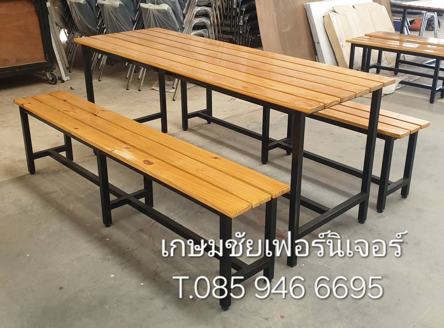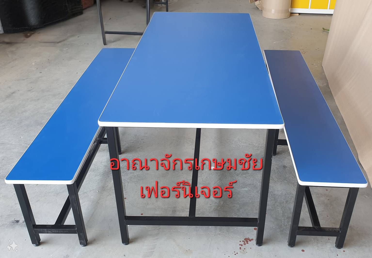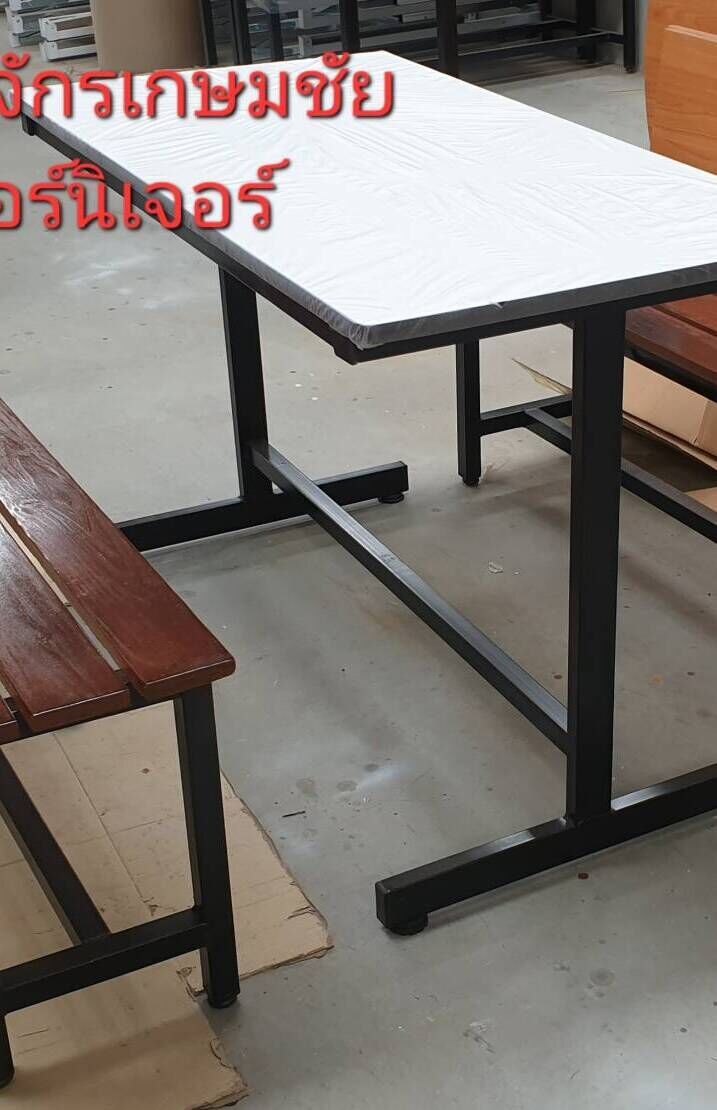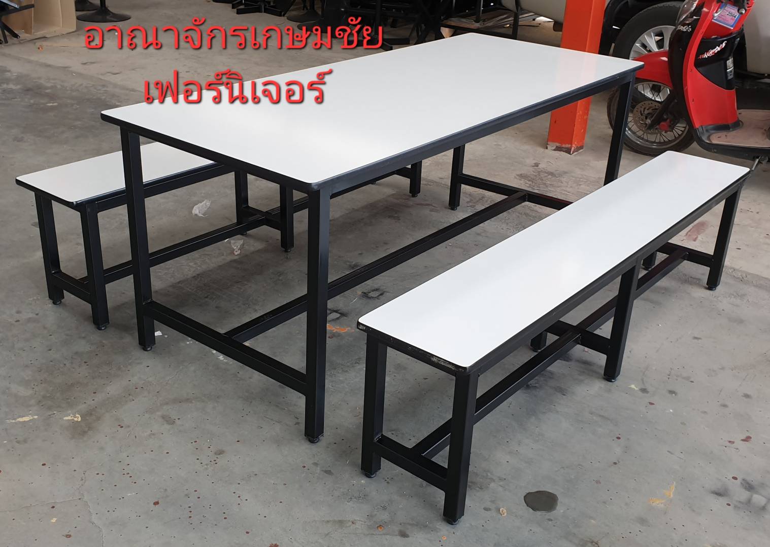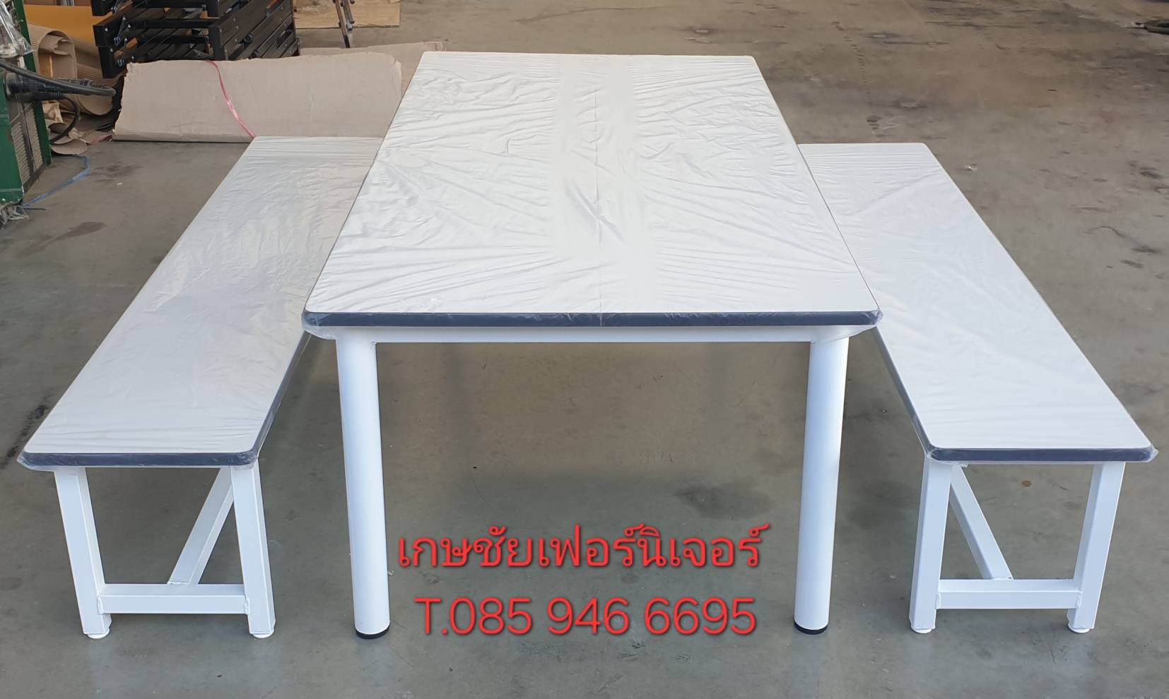 ชุดโต๊ะโรงอาหาร: โต๊ะม้านั่งยาวหน้าโฟเมก้าสีขาว หรือหน้าไม้ยางพาราแท้
