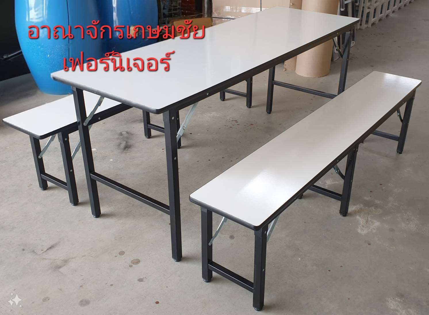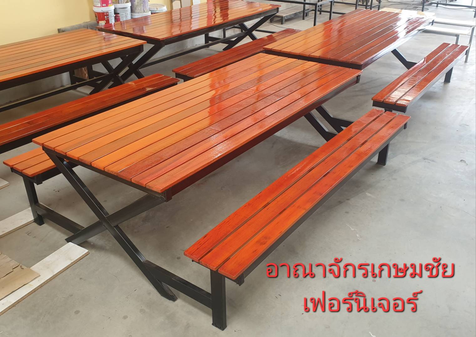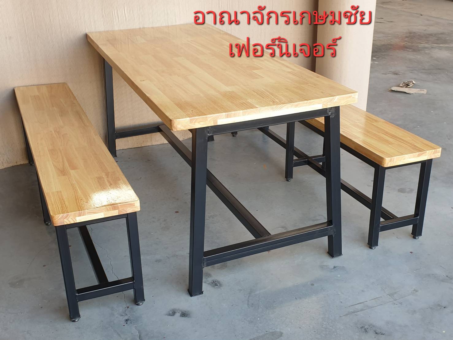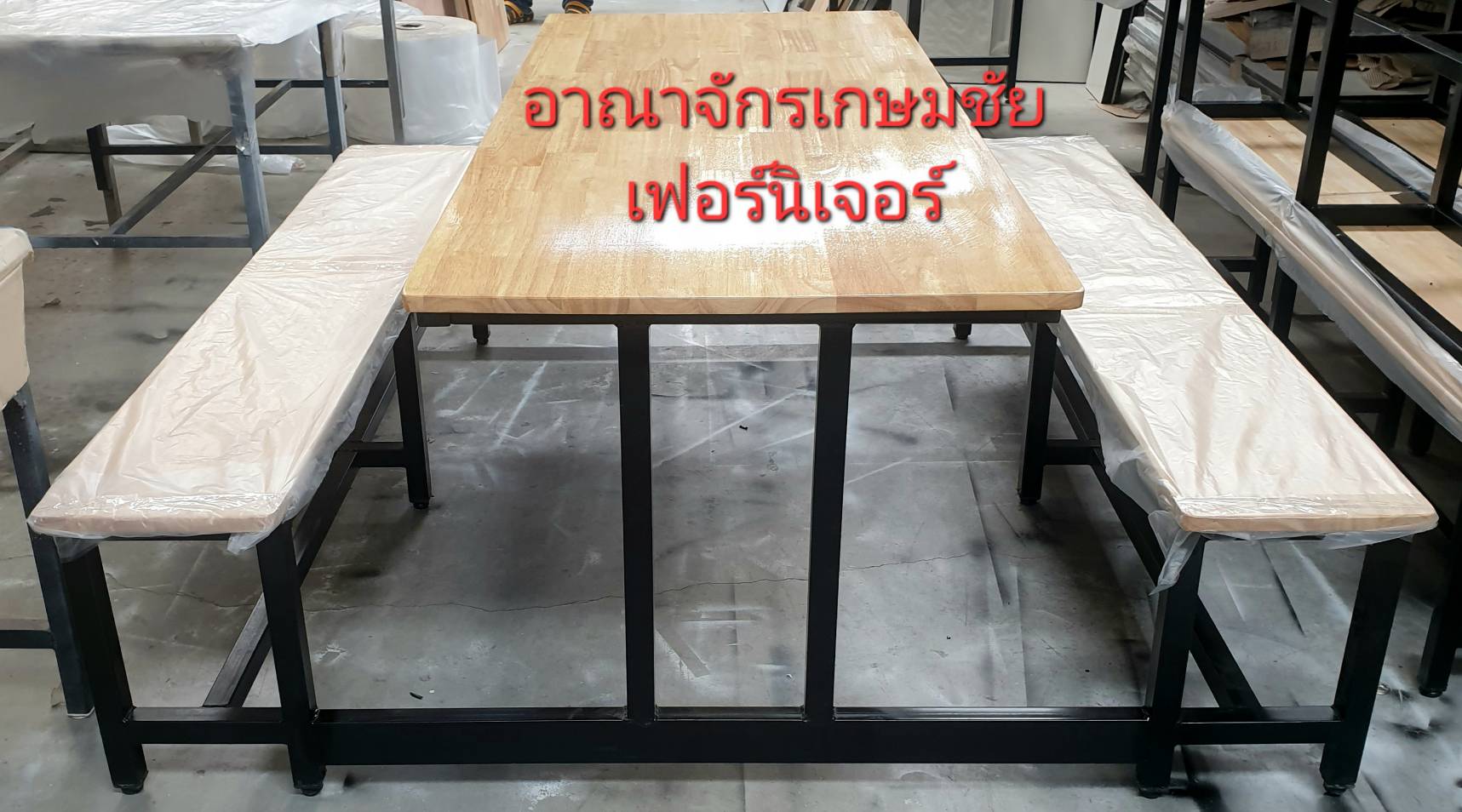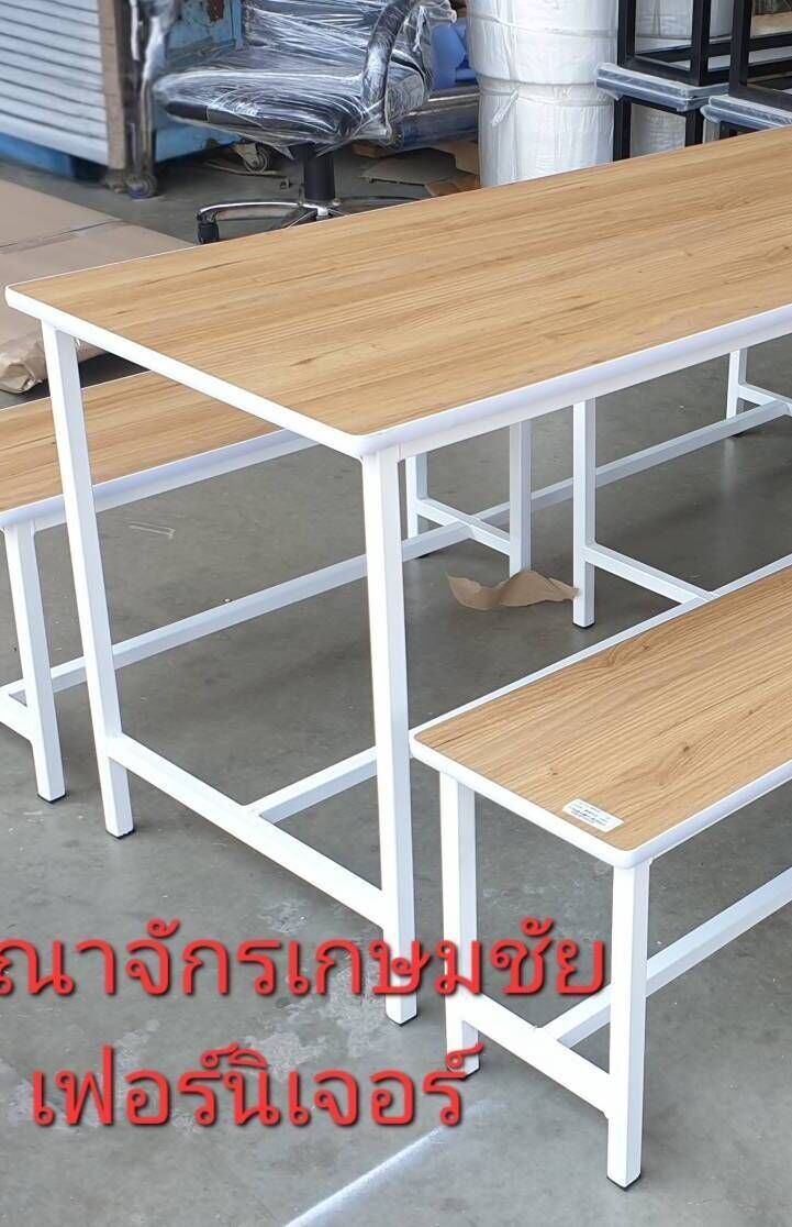 ชุดโต๊ะโรงอาหาร: โต๊ะม้านั่งยาวหน้าโฟเมก้าสีขาว หรือหน้าไม้ยางพาราแท้