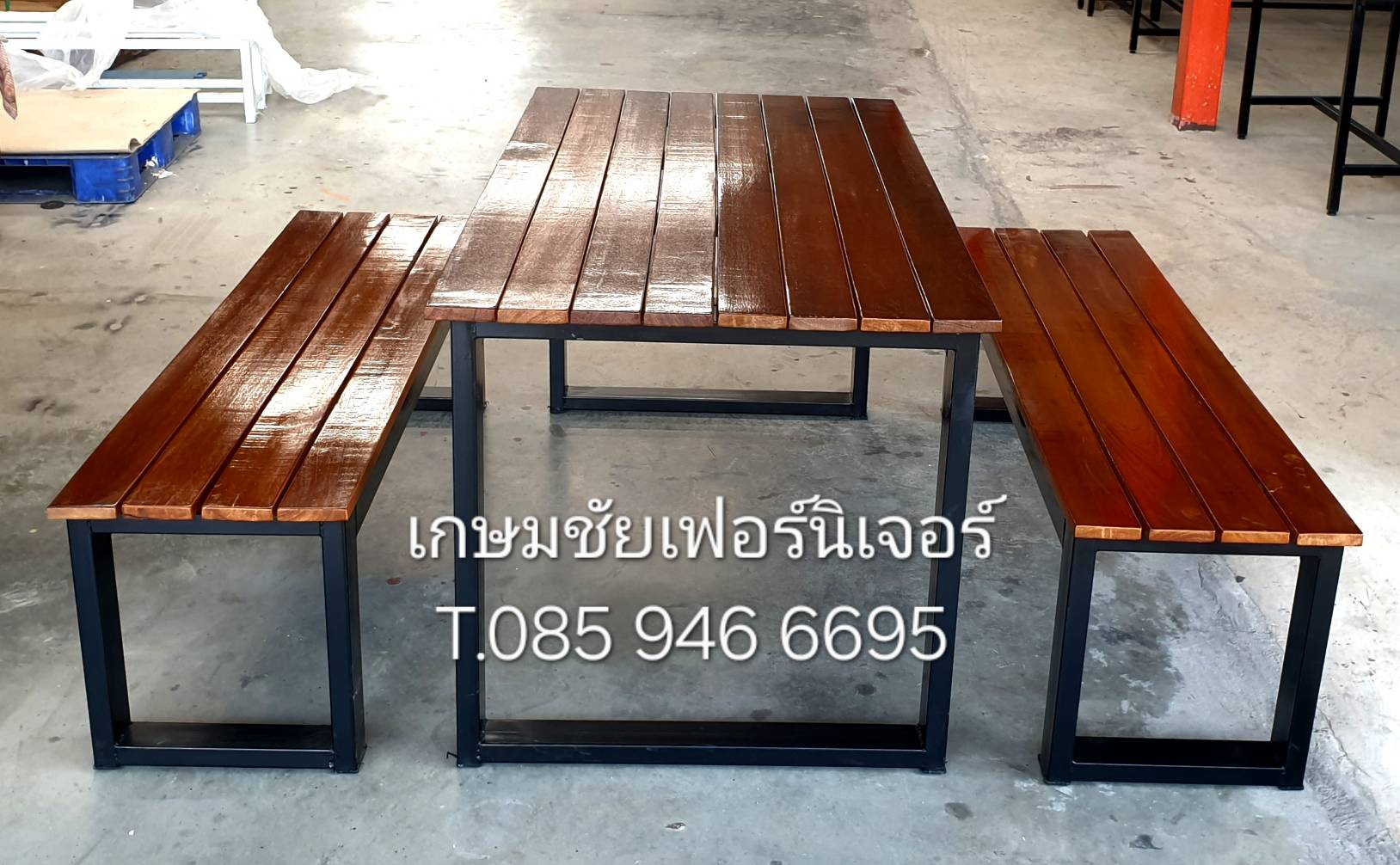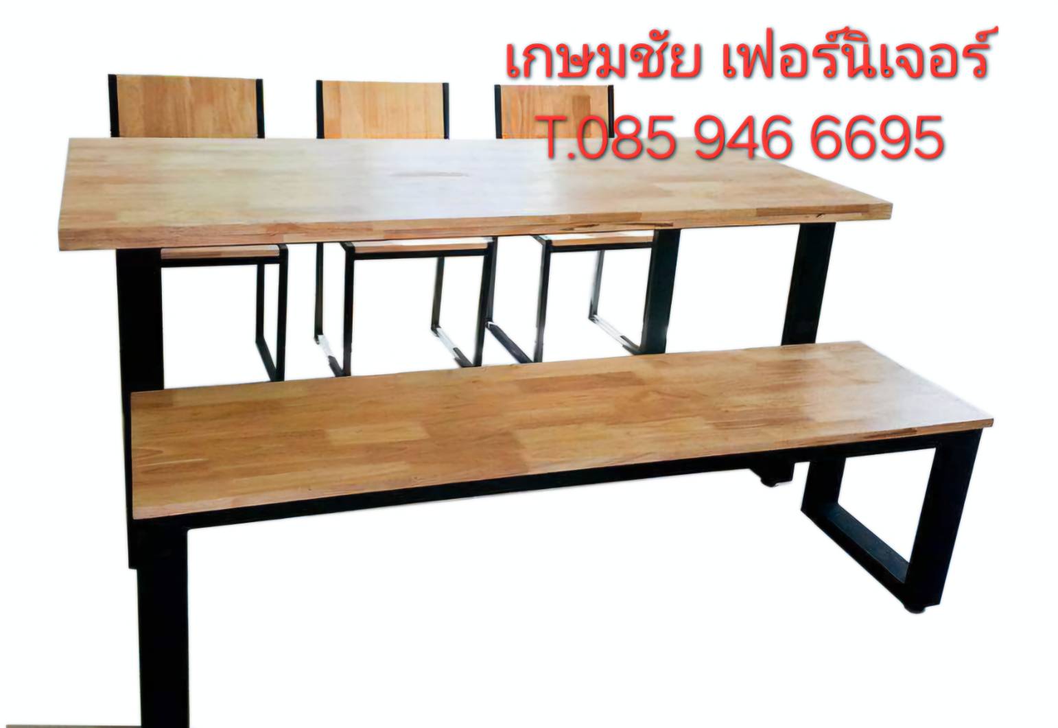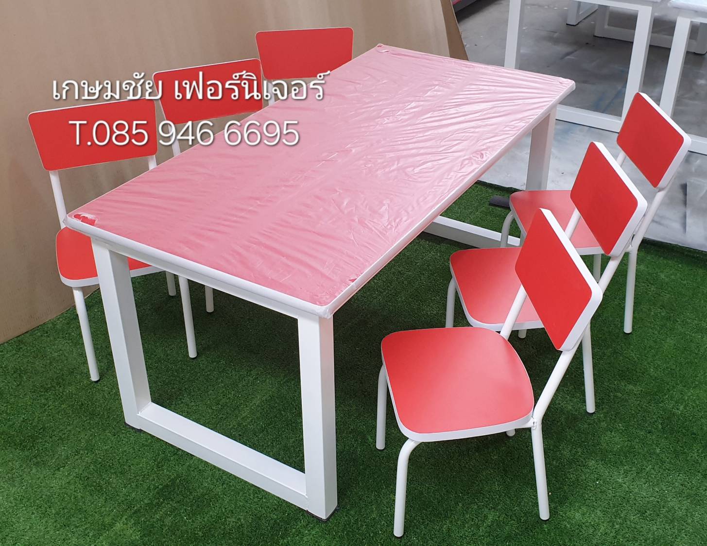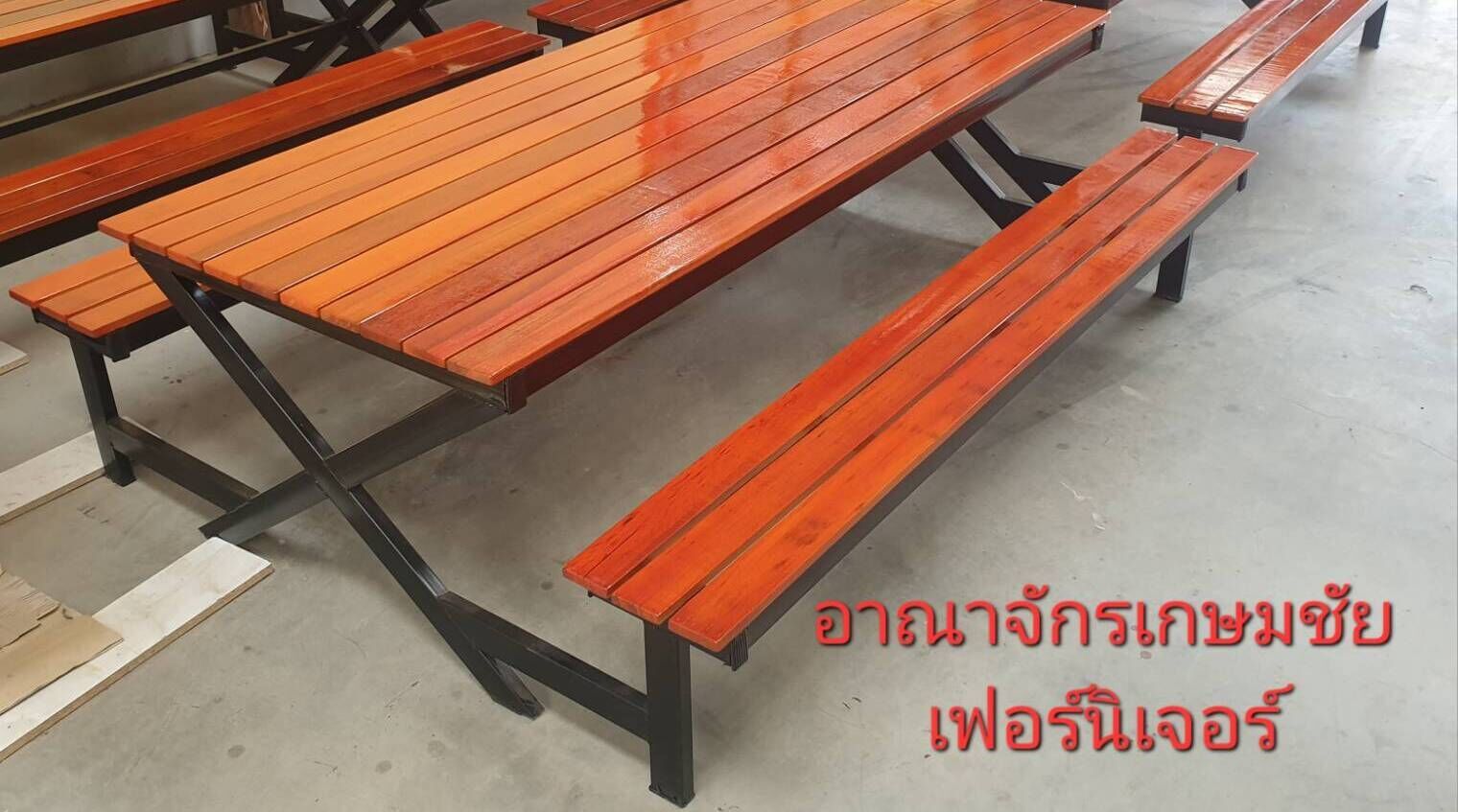 ชุดโต๊ะโรงอาหาร: โต๊ะม้านั่งยาวหน้าโฟเมก้าสีขาว หรือหน้าไม้ยางพาราแท้